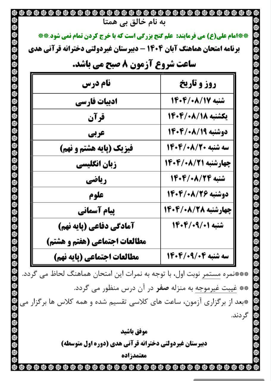 دبیرستان غیردولتی دخترانه قرآنی هدی (متوسطه اول)